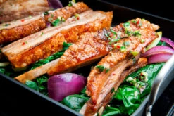 Con esta bandeja podemos preparar carnes y pescados con patatas y verduras fácilmente.