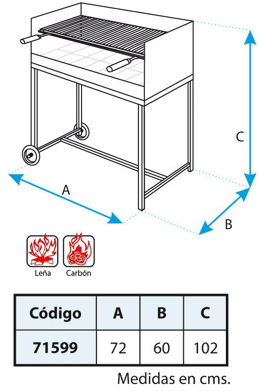 – Combustible recomendado: Leña, Carbón y Briquetas.