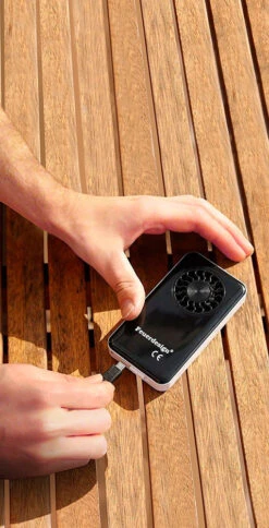 – El ventilador con batería recargable (1000 mAh) tiene una autonomía de más de 4 horas.