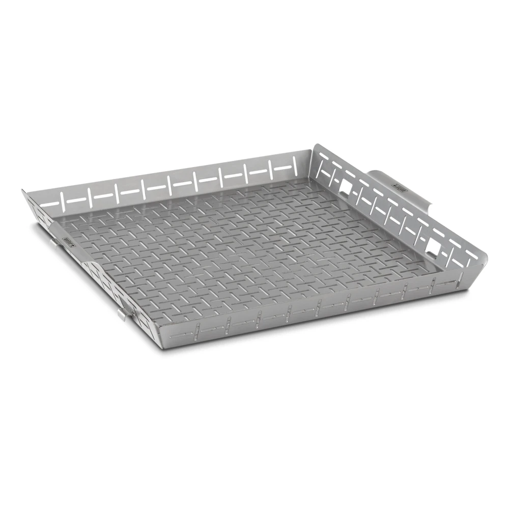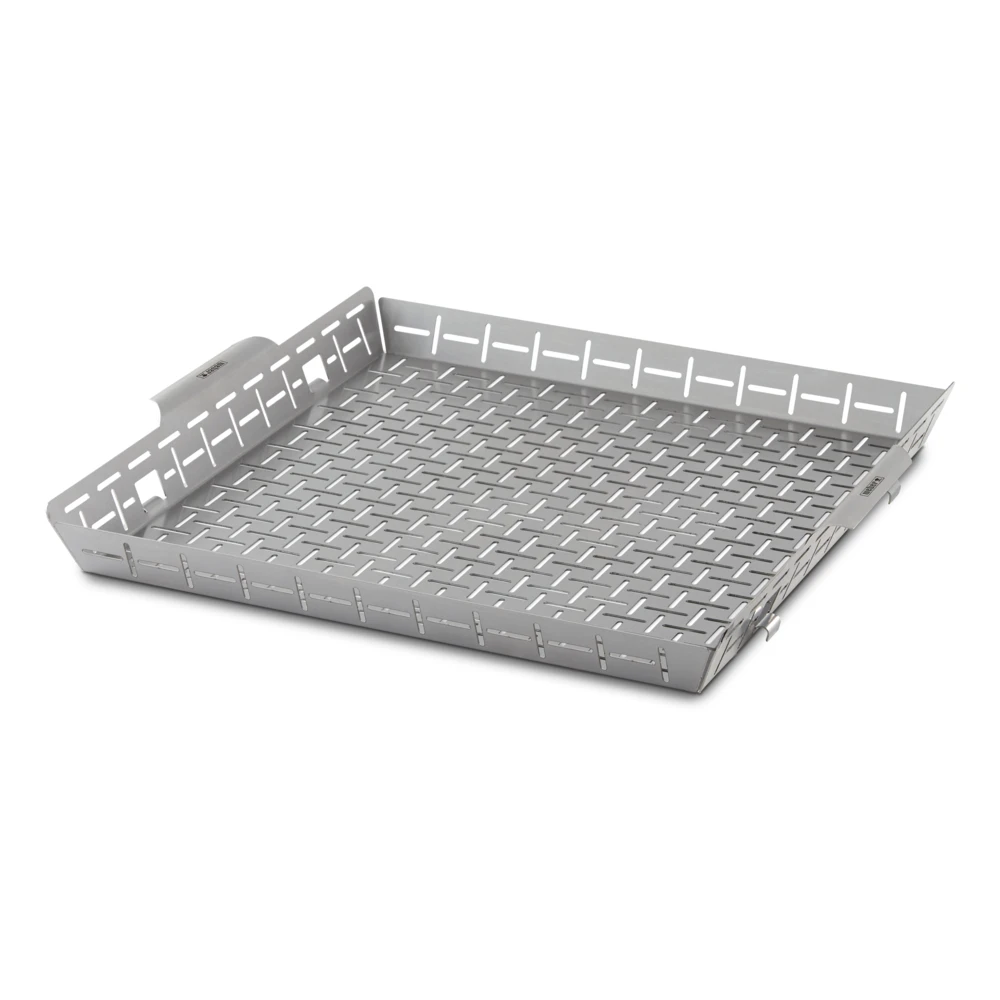 Saca tu cocina al aire libre y prepara platos que nunca creíste posibles en tu barbacoa con este accesorio Weber Crafted Gourmet BBQ System. Con solo sustituir la rejilla de cocción derecha por la cesta para hornear Weber Crafted, podrás caramelizar a la perfección verduras, mariscos delicados y piezas pequeñas de carne. Este accesorio requiere una barbacoa compatible con Weber Crafted, así como el marco y rejillas de cocción Weber Crafted.