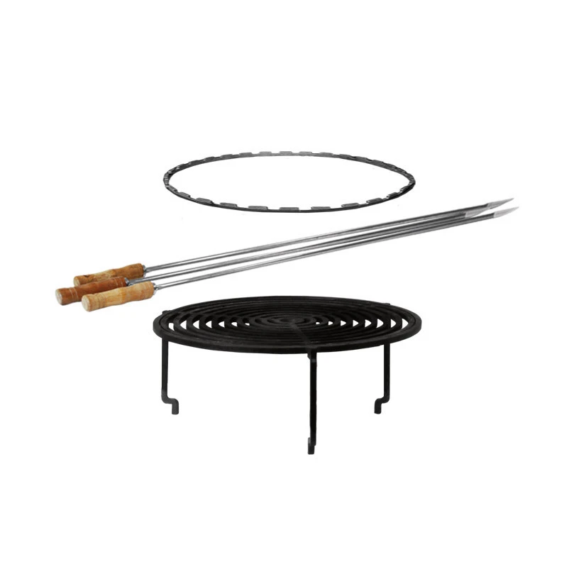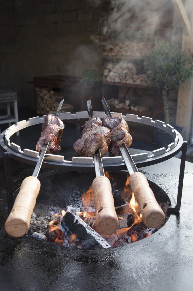 Complementa su Barbacoa de Leña Ofyr con este juego de accesorios para Ofyr XL. El set estándar incluye una Parrilla Redonda XL cm, un Anillo de Espetos Horizontales XL cm y Espetos 105 cm.