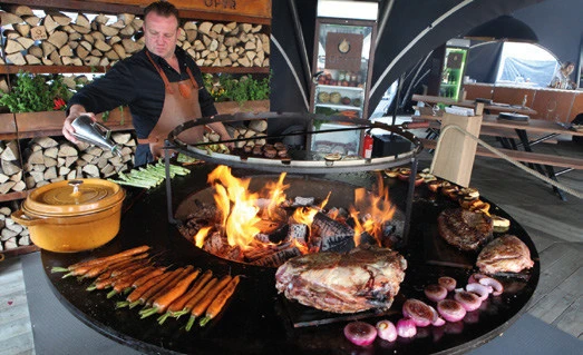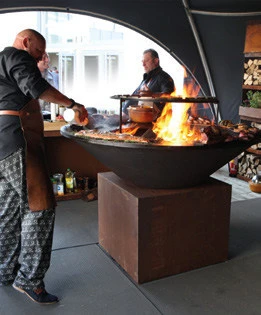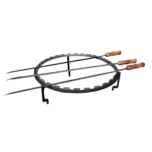 Este conjunto de anillo con muescas y los espetos te permiten junto con un soporte elevado que se coloca sobre el fuego de una Barbacoa de Leña Ofyr, conseguir que la altura sea la correcta para asar carne y verduras en su punto. Está disponible para los modelos Ofyr XL.