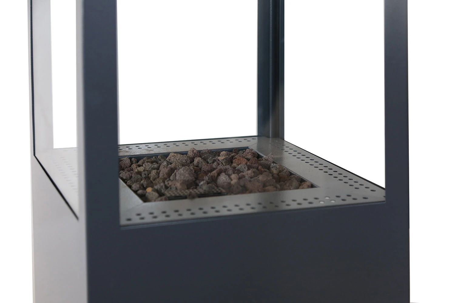 La estufa Parkano es un calentador de terraza móvil que trabaja con gas butano y propano, combinando el fuego visible con el calor que desprende este. Gracias a su llama alimentada por las piedras de lava, el calor circula en el interior y se exterioriza por los cuatro lados de la parte superior. Además gracias al calentamiento del cristal protector, también emite calor infrarrojo a corta distancia.