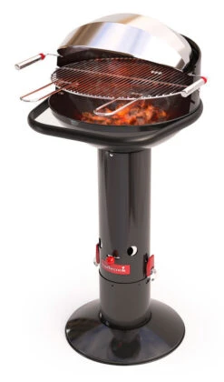 Estupenda barbacoa de carbón y leña con manilla elevadora reversible, de un diseño simple pero de altísima calidad. Su placa de cocción de Acero Inoxidable incluye plancha y parrilla, dos en uno.