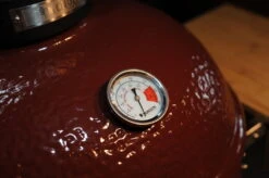 La zona de cocción se puede ampliar con dos rejillas adicionales hasta tener una segunda y un tercer nivel de cocción. Además, con el deflector formado por dos medias lunas, la cocción directa e indirecta se puede realizar simultáneamente. El diámetro de esta barbacoa tiene el tamaño suficiente para estar cocinando simultáneamente diferentes platos.
