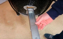 3. HORNEAR: La barbacoa kamado Monolith puede cocinar auténticas Pizzas con el mismo sabor que la cocción en un horno de leña. Se alcanzan fácilmente temperaturas hasta 350 / 400 °C y puedes cocinar la Pizza perfecta en un máximo de 3 minutos, o bajar la temperatura y cocinar el pan. No hay necesidad de invertir en un horno por separado, solamente necesitarás la piedra deflectora con elevador. Se coloca el elevador y encima de éste la piedra deflectora.