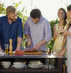 Su brillante diseño proporciona numerosas opciones de uso, como una isla de cocina móvil, una armario o una superficie extra para servir bebidas y preparación de comida en la terraza o el jardín.