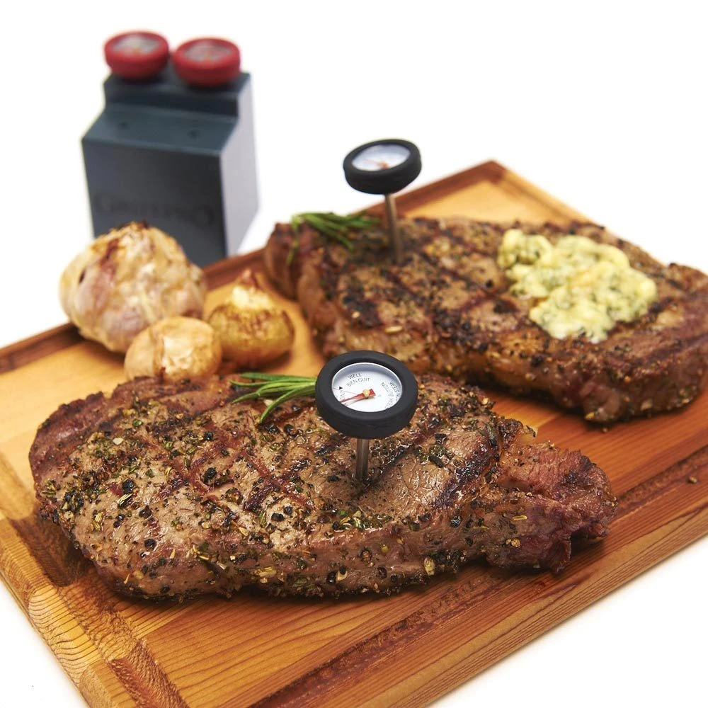– 2 Mini termómetros para aves (color rojo) y 2 para los demás tipos de carne (color negro).