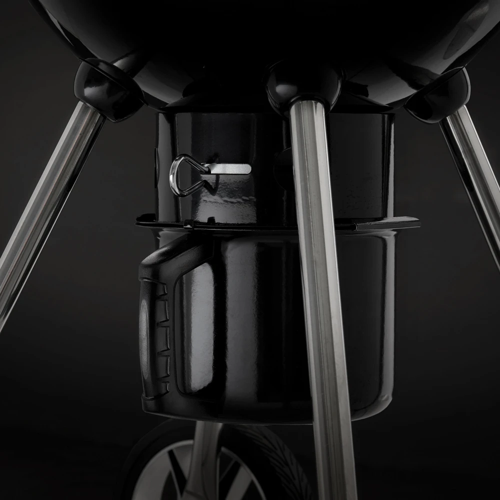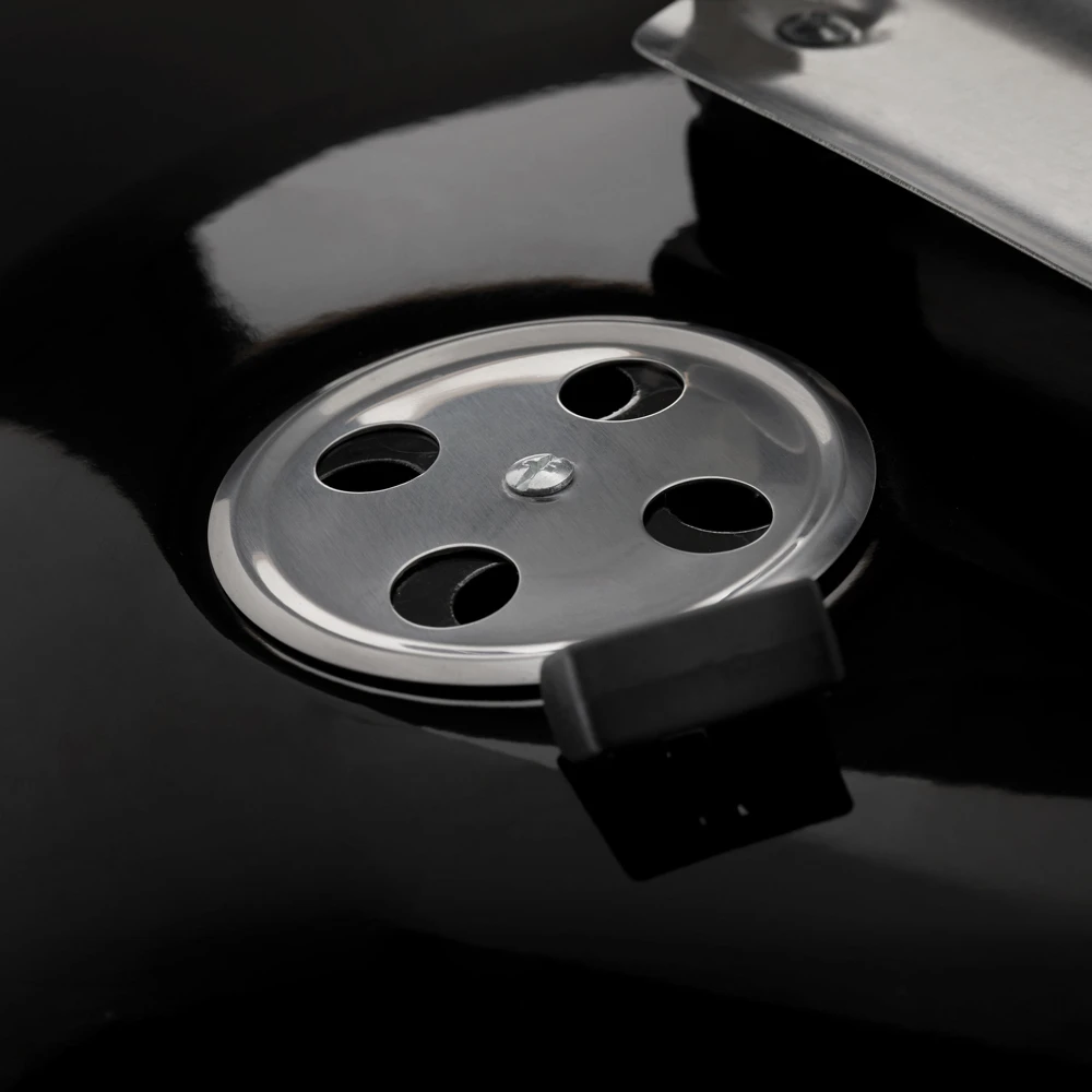 Cuando se asa con carbón hay que controlar el calor y el flujo de aire, por lo tanto el difusor de calor de Acero Inoxidable distribuye uniformemente el calor y dirige el carbón consumido al depósito de cenizas. El sistema mejorado Control del Aire Pro aumenta el flujo de aire y la precisión de la temperatura, al tiempo que evita la entrada de agua en la barbacoa.