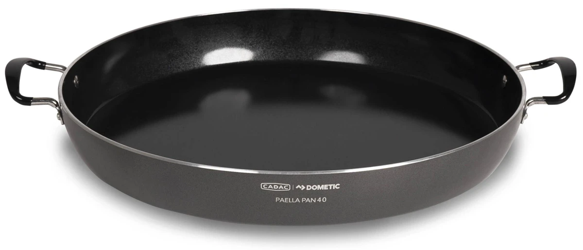 Paellera de aluminio de peso ligero con revestimiento antiadherente y mangos de acero inoxidable. La Paellera tiene un diámetro de 36 cm y es ideal para la preparación de comidas como paella, risotto, pasta y panqueques.