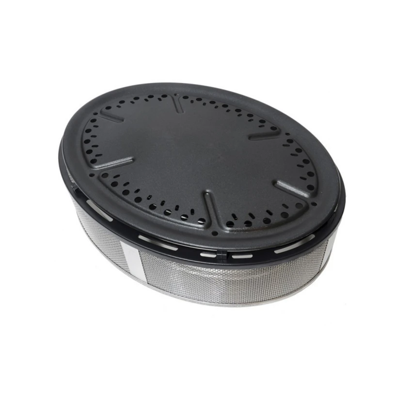 Gracias a su diseño, los jugos y excesos de grasas de la cocción se deslizan hacia los bordes para depositarse en el recipiente inferior, evitando su combustión y, en consecuencia, humos y llamas indeseables.