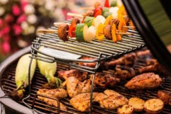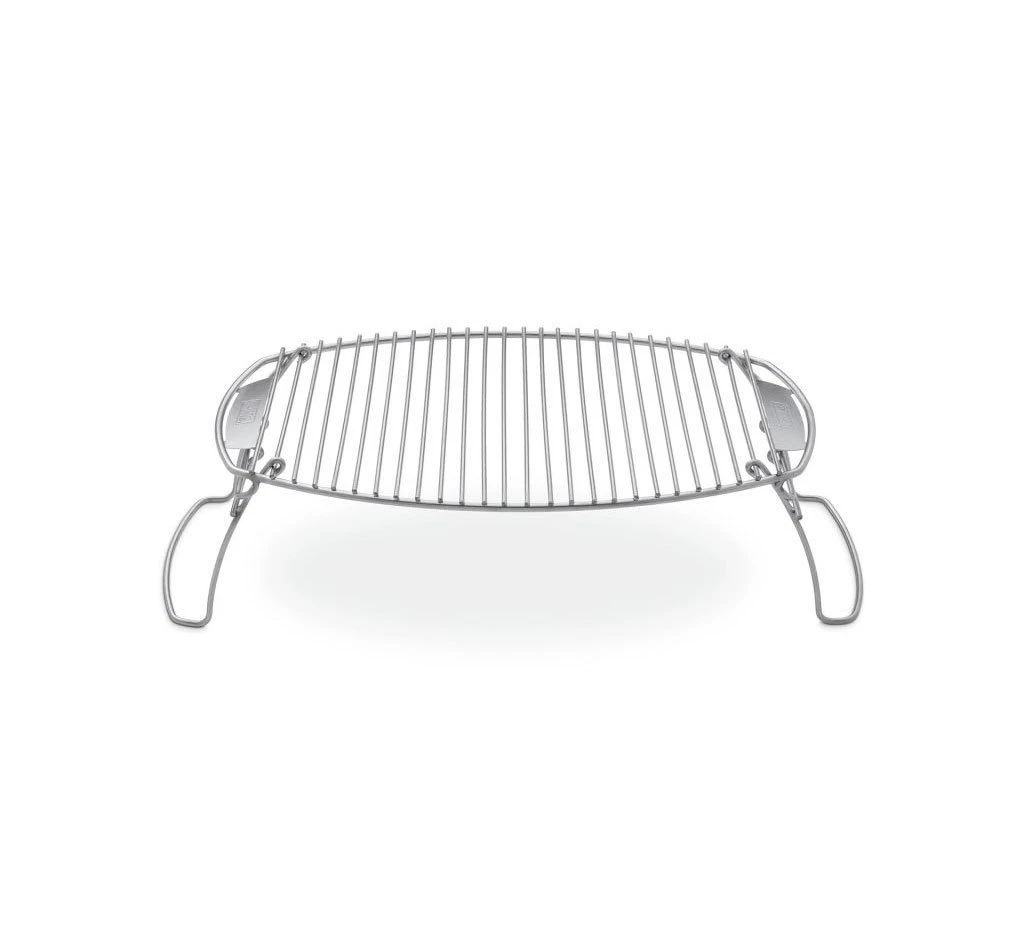 Incremente la superficie de cocción de su barbacoa con esta parrilla de 56 x 31 cm. Gracias a sus patas, esta parrilla de expansión quedará a una altura de 13 cm. sobre su parrilla de cocción principal, pudiendo usar ambos niveles. Las patas quedan fijas sobre la parrilla y son plegables para un almacenamiento más cómodo.