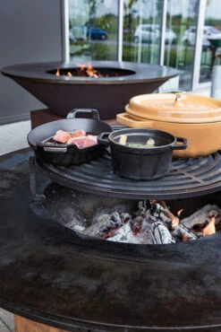 Esta robusta parrilla de dos piezas es ideal para cocinar cortes de carne grandes en la Barbacoa de Leña Ofyr. Coloque la parrilla y el soporte directamente sobre el fuego para obtener un sabor más intenso. Al no saturarse la plancha para cocinar de Ofyr, puede asar otros alimentos al mismo tiempo y, colocando el soporte, también puede echar más madera al fuego fácilmente. Disponible para el modelo de 100 cm.