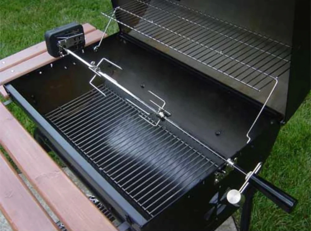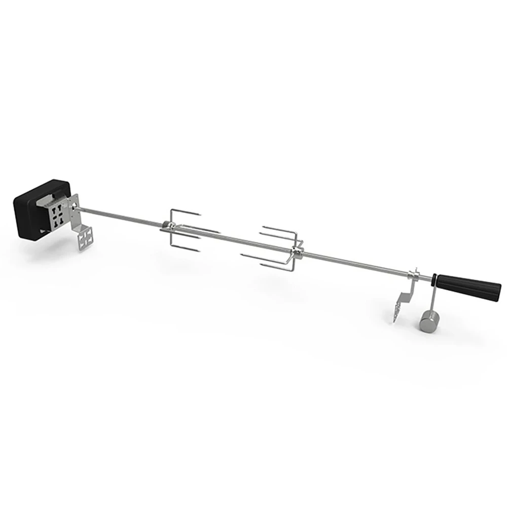 Obtenga un verdadero sabor a carbón y una comida perfectamente hecha con el kit de rustidor. El motor del rustidor gira lentamente y asa la carne bañándola en su propio jugo. Esto hace que el pollo, el bistec, las salchichas y mucho más estén deliciosos.