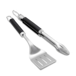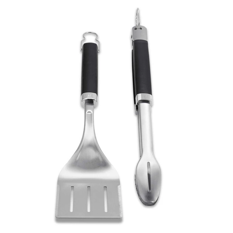 El juego de pinzas y espátula de barbacoa está diseñado para rendir. Ambos utensilios cuentan con una sólida estructura de Acero Inoxidable y un mango de tacto suave para aportar confort y control.