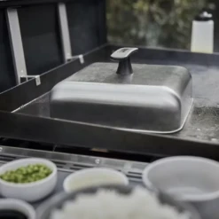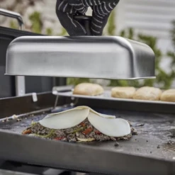 Con la Tapa de cocción para Plancha Weber puedes asegurarte de que el queso en tu panini o hamburguesa se derrita, además, es perfecta para cocinar arroz, verduras y mucho más. La tapa tiene capacidad para hasta 4 hamburguesas estándar de Ø10 cm cocinándose a la vez.