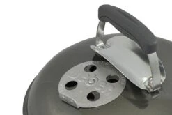 La barbacoa Original de Weber pero en miniatura. Si quieres hacer barbacoa en el campo, en la playa o en cualquier lugar donde haya una fiesta. Simplemente cójala y ya está. Tiene un asa para su fácil transporte y cuando estamos usando la barbacoa el asa nos sirve como soporte de la tapa.