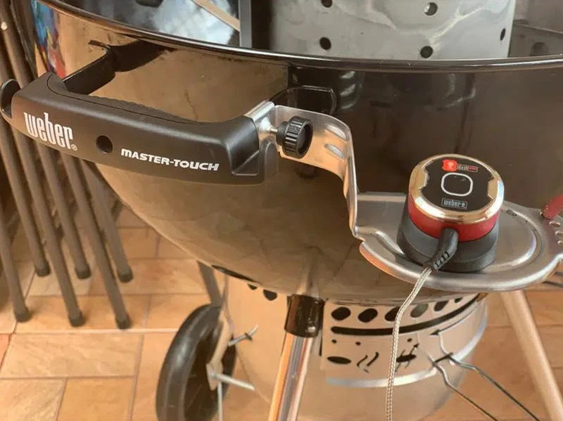 El soporte para iGrill te permite fijar fácilmente un iGrill (a la venta por separado) al mango de tu barbacoa de carbón Weber.