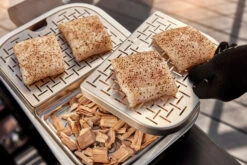 Solo tendrá que añadir su madera de ahumar Weber favorita un poco humedecida y podrá cocinar las mejores recetas al estilo «low and slow», o lo que es lo mismo, ahumados prolongados a fugo lento.